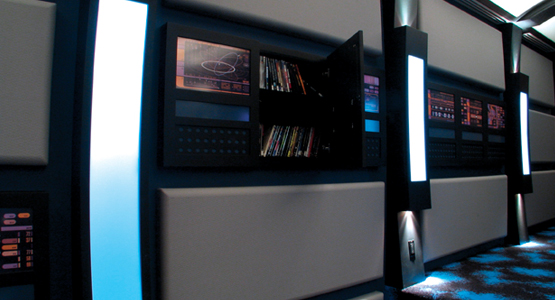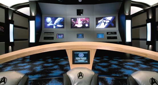 Si vous êtes fans de Star Trek, vous avez toutes les raisons de jalouser honteusement le propriétaire de ce home-cinéma de luxe : il s’est attaché à reproduire une passerelle qui pourrait figurer sans le moindre mal dans l’une des nombreuses déclinaisons de la saga…